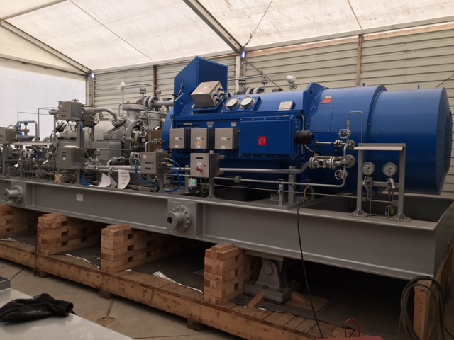 Termomeccanica MESB 150.11 model, each coupled with a 1.5 MW electric motor working under inverter. The use of the inverter is necessary so as to guarantee the pump working range under the various conditions expected during the development of the oil field, for a flow rate of 170 m3/h with the head ranging from 1350 m to 2073 m, obtained by increasing speed from 2720 rpm up to 3280 rpm. Pumps crated and stored indoors.